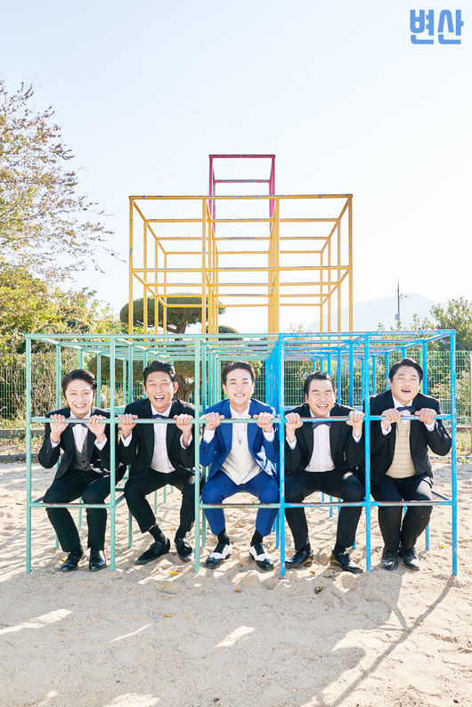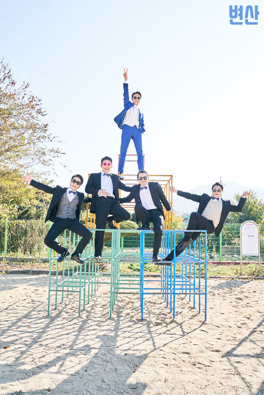 슈트를 입고 훤칠한 용모를 자랑하는 박정민과 고준, 배제기, 최정헌, 임성재는 영화 속에서 보여줬던 촌스러운 비주얼과는 상반되는 멋진 모습과 발랄한 포즈로 웃음을 유발한다. 특히 비좁은 정글짐 안에 들어가 해맑게 웃고 있는 이들의 모습은 실제 고향 친구를 방불케 하는 찰떡 호흡과 유쾌한 현장 분위기를 엿볼수 있게 한다.
