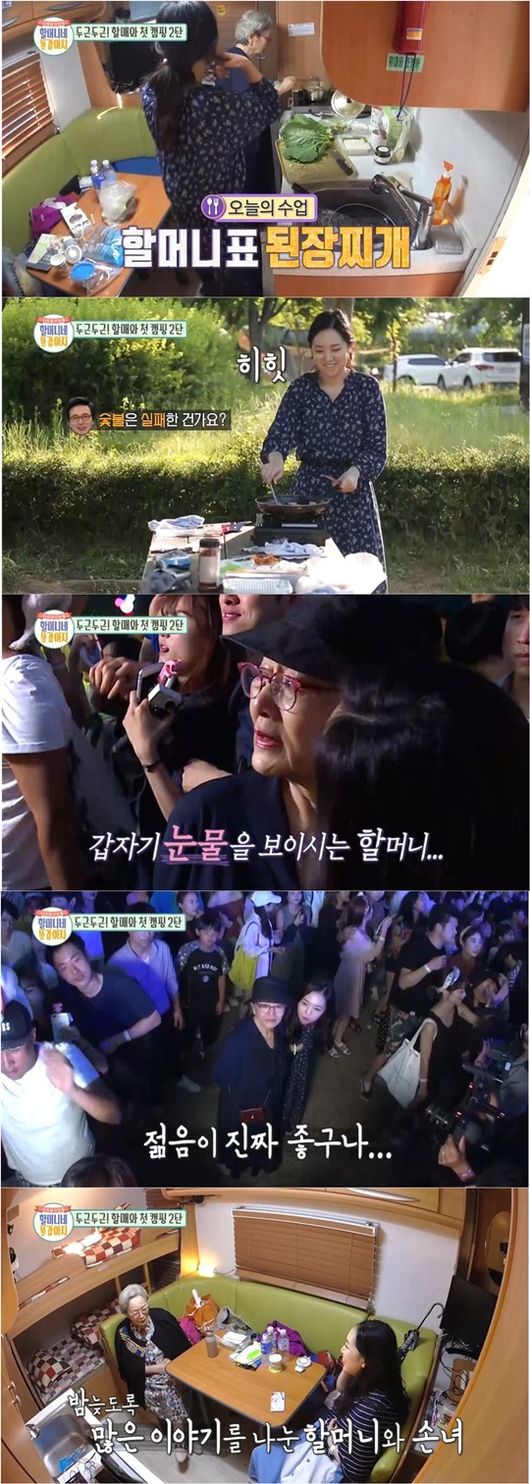 이날 방송에서 김영옥은 손녀 선우와의 난생처음 캠핑에 시종일관 즐거운 모습을 감추지 못했다. 김영옥은 손녀가 준비한 카라반 이곳저곳을 살피며 시종일관 손녀와 친구 같은 조손 모습을 보인 것. 할머니의 만족하는 모습에 들뜬 선우는 내친김에 자신만만하게 숯불 피우기에까지 도전했다. MC들의 우려와는 달리 한 번에 불 붙이기에 성공한 손녀 선우, 하지만 불씨는 곧 사그라들고 당황한 선우는 ‘숯불 연기가 건강에 나쁘다’는 자신만의 이유를 들며 프라이팬에 삼겹살을 굽는 모습을 보여 큰 웃음을 줬다.