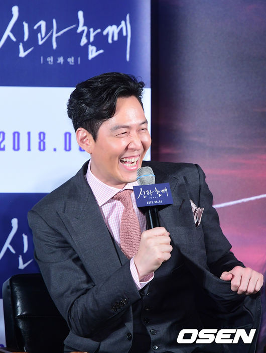 이정재는 6일 오전 서울 롯데시네마 건대입구에서 열린 ‘신과함께-인과 연’ 제작보고회에서 영화에 대한 이야기를 전했다.