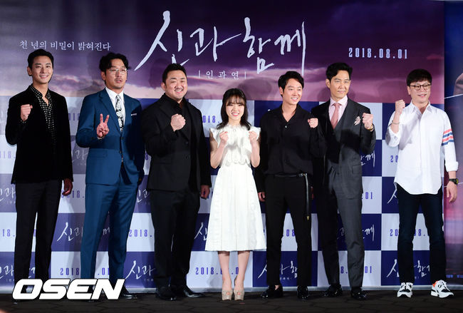 6일 오전 서울 롯데시네마 건대입구에서는 ‘신과함께-인과 연’ 제작보고회가 열렸다. 이날 자리에는 김용화 감독을 비롯해 하정우, 주지훈, 김향기, 마동석, 김동욱, 이정재 등이 참석해 영화에 대한 이야기를 나눴다.