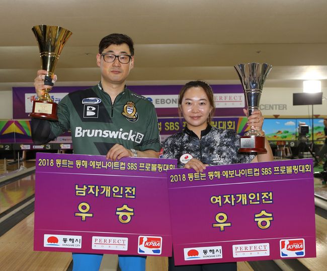 이명훈(브런스윅)과 윤희여(팀스톰)가 각각 프로볼링 남녀부 정상에 섰다.