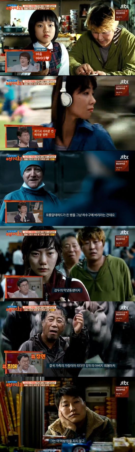 6일 오후 방송된 종합편성채널 JTBC ‘방구석 1열’에서는 봉준호 감독의 ‘괴물’과 김성훈 감독의 ‘터널’에 대해 다뤘다.
