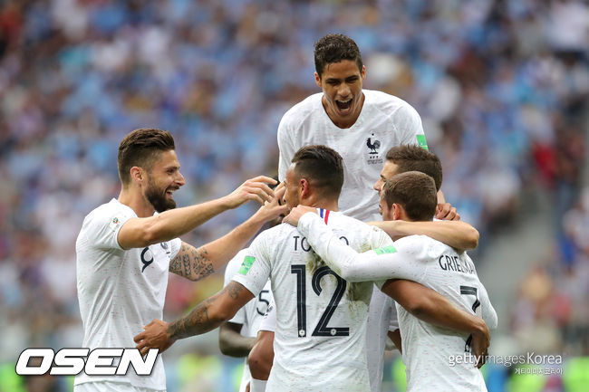 프랑스는 6일(한국시간) 오후 11시 니즈니 노브고로드 스타디움서 남미팀 우루과이와 2018 국제축구연맹(FIFA) 러시아 월드컵 8강에서 바란의 선제골과 그리즈만의 쐐기골을 앞세워 2-0으로 승리했다.