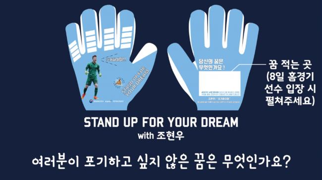 ‘월드컵 출전’의 꿈을 이룬 조현우가 이날 경기장을 찾는 관중들의 꿈을 응원하기 위해 부채 5,000개를 준비했다. 팬들은 각자의 꿈을 부채에 적을 수 있으며 선수입장에 맞춰 다함께 일어나 부채를 흔들 예정이다. 또한 월드컵 출전 꿈을 이룬 조현우를 환영하기 위해 DG존(가변석)에서는 21, 23 숫자를 나타내는 카드섹션이 진행된다.