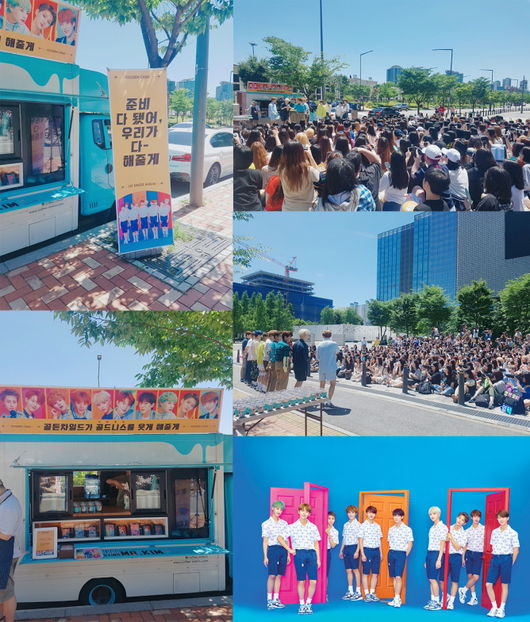 평일 낮 시간대에 진행된 팬미팅임에도 불구하고 약 350여 명의 팬들이 운집한 가운데, 골든 차일드는 직접 준비한 커피차로 시원한 음료를 팬들에게 선물했다.