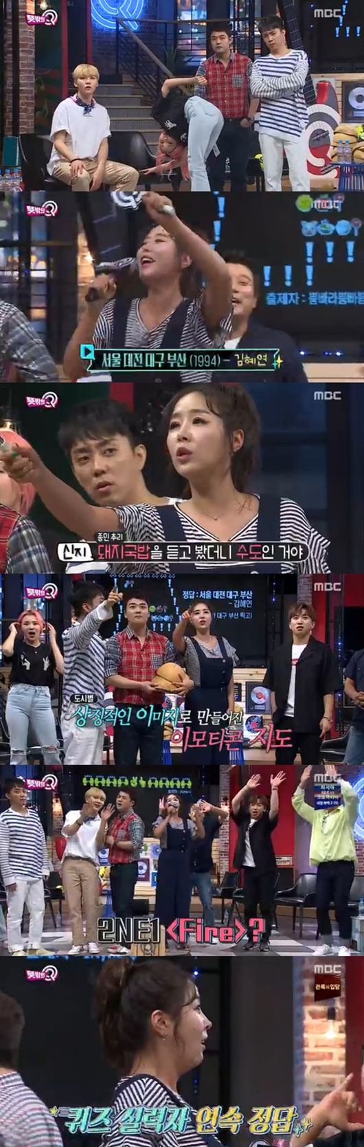 7일 오후 방송된 MBC '뜻밖의Q'에서는 그룹 코요태의 김종민, 신지와 모모랜드 주이가 초대돼 Q플레이어로 활약하는 모습이 그려졌다.