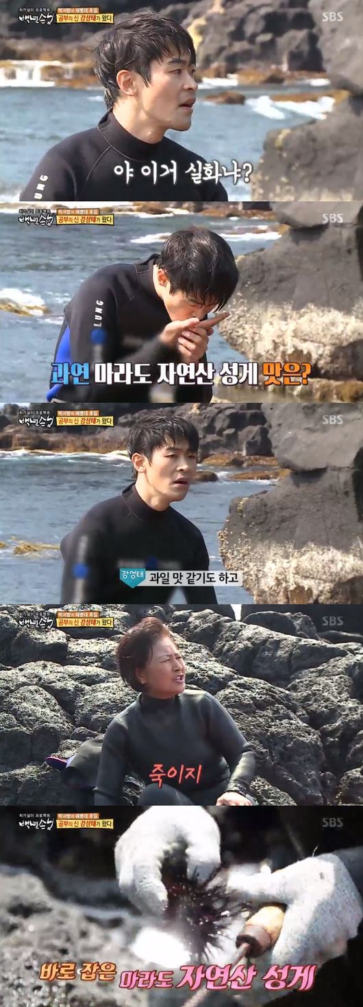 처음에는 답해주던 박여사도 "해병대 빨리 해라"라며 어서 물 안으로 들어가라고 소리를 쳤다. 처음에는 다소 어려워하던 강성태도 거듭된 시도 끝에 성게를 낚는데 성공, 바로 잡은 성게를 맛보는 호사를 누렸다. 그는 "지금까지 먹어본 맛이랑 다르다. 과일 맛 같다"며 감탄했다. 박서방은 "이 맛을 보여주려고 여기에 부른 것"이라며 자랑스러워했다.