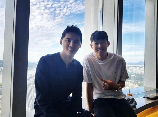 그룹 JYJ 멤버 겸 뮤지컬 배우 김준수가 국가대표 축구선수 손흥민과의 인증샷을 공개했다.