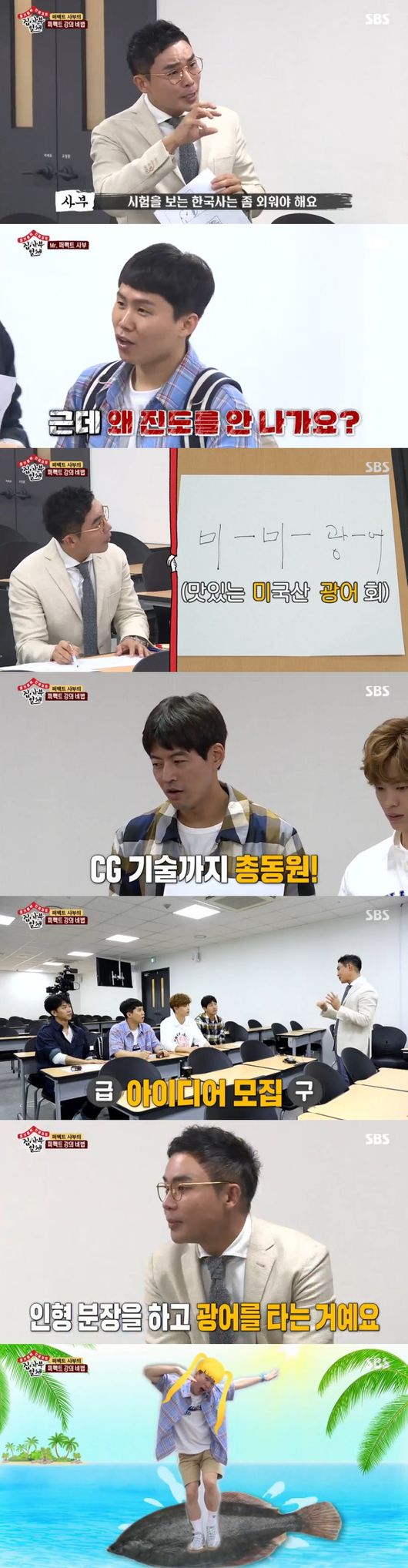 설민석은 "시험을 보는 한국사는 외워야한다"며 직접 암기팁을 전수하겠다고 했다. 먼저 '미미광어'를 언급, "맛있는 미국산 광어회"라고 외우라고했다. 신미양요 때 미국이 광성진이란 군사기지에서 어재연 장군님이 막아냈다는 수능 단골출제 문제를 쉽게 설명한 것. 절대 안 잊어버릴 한국사 꿀팁을 공개했다. 설민석은 직접 촬영해 편집에 CG까지 한다며 모든 걸 직접 연출한다고 했고, 새로운 버전 CG 구상 중 아이템을 추천해달라고 했다. 퍼펙트 강의 비법을 위해 양세형에 이어 역사 열등생인 상윤까지 적극적으로 나섰다.