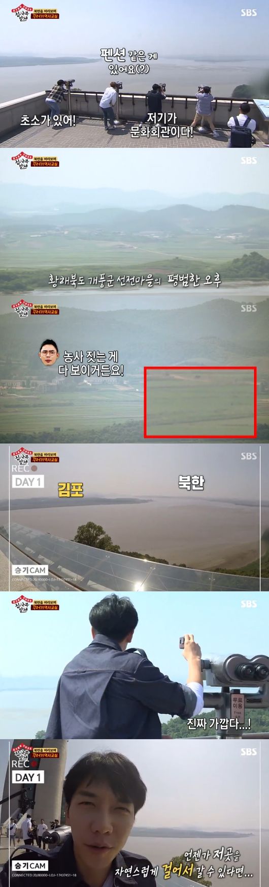 이어 통일의 경제적 이득을 전하면서 전망대에 올랐다. 임진강 건너 고장 2km너머로 바로 북한이 보였다. 손에 잡힐 듯 가까운 거리였다. 모두 "이렇게 가까이 있었던 거냐"면서 북한의 모습을 보고 놀라워했다. 모내기철에는 농사짓는 것도 보일 정도의 거리라 했다. 성재는 "더 보고 싶어도 더 볼 수 없다는 것이 아쉽다"고 했다. 승기는 "언젠가 저 곳을 자연스럽게 걸어서 갈 수 있다면 어떨까"라면서 같은 하늘아래, 같은 햇살을 느끼는 북한과 남한의 통일을 고대했다.