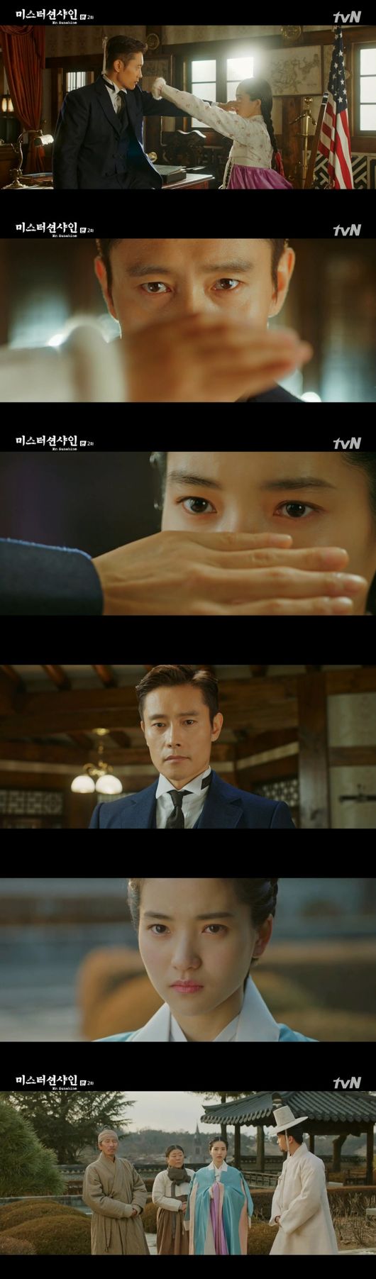 8일 오후 방송된 tvN 토일드라마 ‘미스터 션샤인’(극본 김은숙, 연출 이응복)에서 미군 유진 초이(이병헌 분)가 조선으로 발령 받은 가운데 의병이 되기로 결심한 고애신(김태리 분)을 만나는 과정이 그려졌다.