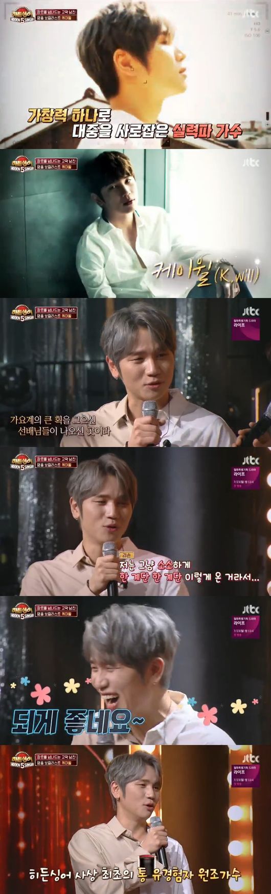 8일 방송된 JTBC 예능 '히든싱어 시즌5'에서 케이윌이 출연했다.