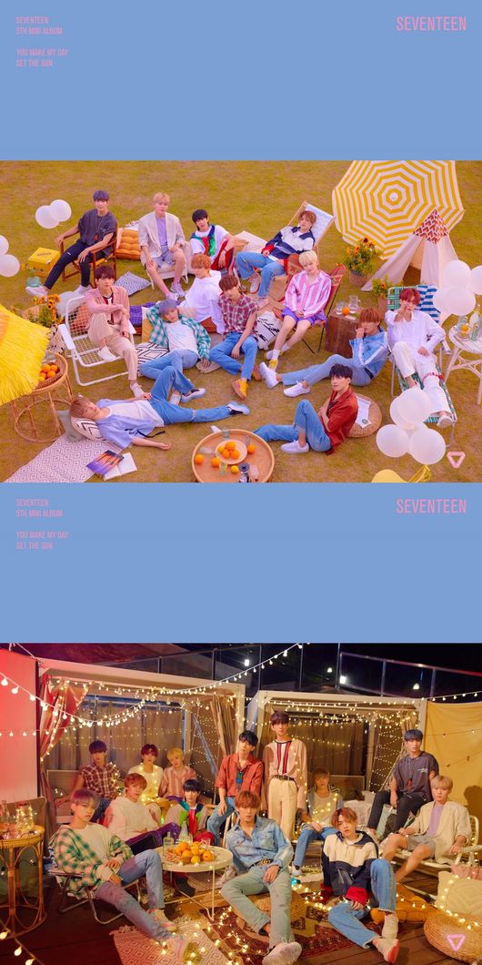 소속사 플레디스 엔터테인먼트는 9일 자정 세븐틴 공식 SNS 채널을 통해 미니 5집 ‘YOU MAKE MY DAY(유 메이크 마이 데이)’의 ‘SET THE SUN ver. #4’ 단체 오피셜 포토 2종 세트를 공개하며 컴백 카운트다운에 돌입했다.