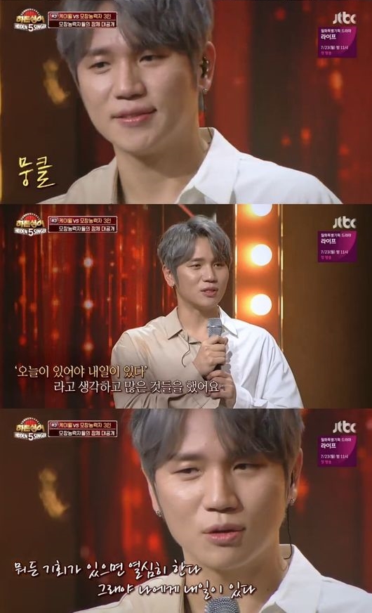 8일 방송된 JTBC '히든싱어 시즌5'에는 케이윌이 원조 가수로 출연해 케이윌을 꿈꾸는 참가자들과 함께 노래하는 시간을 가졌다.