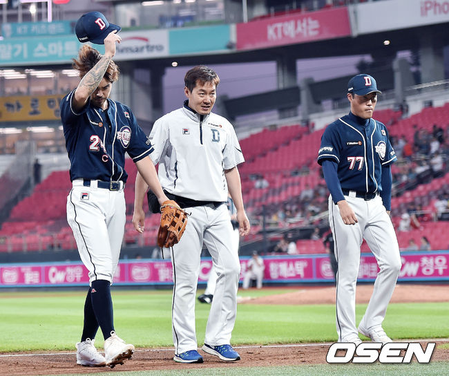 이날 오재원은 3회말 KT 공격 2사 1,3루 윤석민 타석을 앞두고 갑작스럽게 교체됐다. 햄스트링 부분 통증 때문.