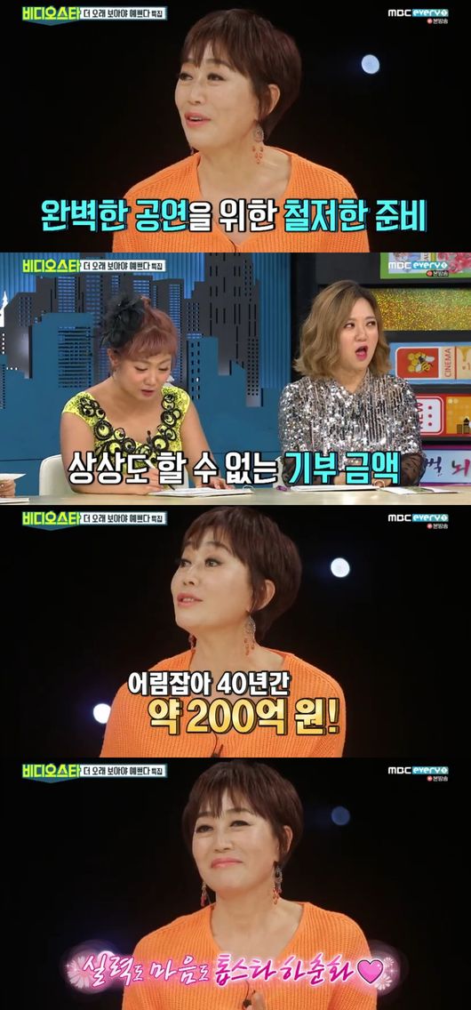 무엇보다 하춘화는 그 많은 돈에 대해 기부로 사회에 환원했다고 했다. 지금까지 40년동안 기부금만 200억이라라고 해 훈훈함을 안긴 것. 실력도 마음도 톱스타인 하춘화였다. /ssu0818@osen.co.kr