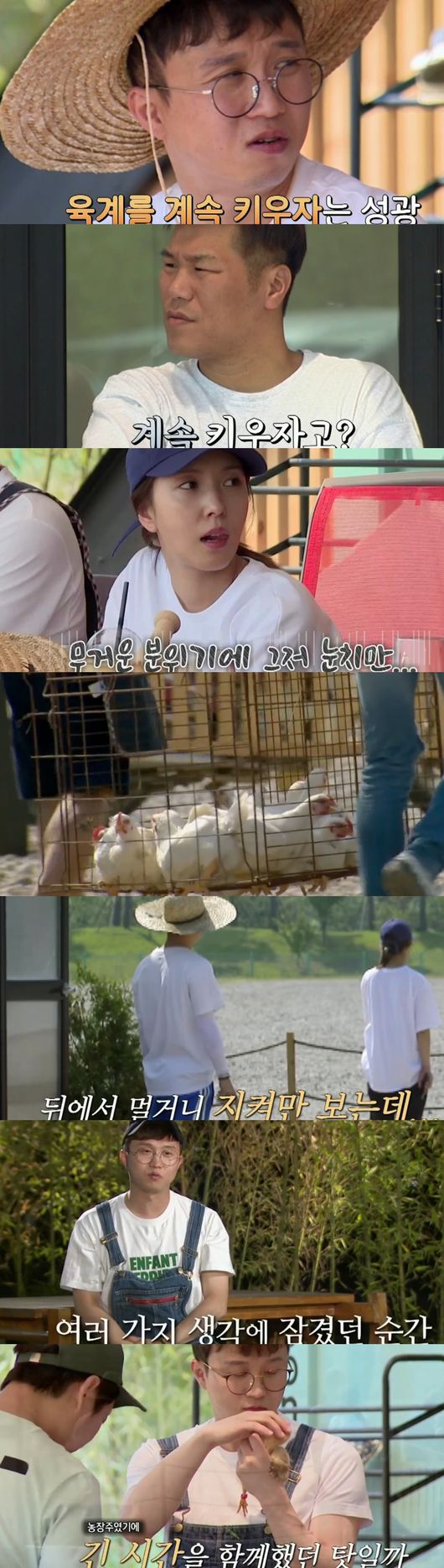 박성광이 닭을 옮겨가는 모습을 안타깝게 바라봤다. 뒤에서 지켜보던 박성광이 눈물을 흘렸다. 박성광은 "내가 병아리 때부터 봐 왔는데 앞으로 가면 다시 못보지 여러가지 복잡한 생각이 들었다"고 전했다.