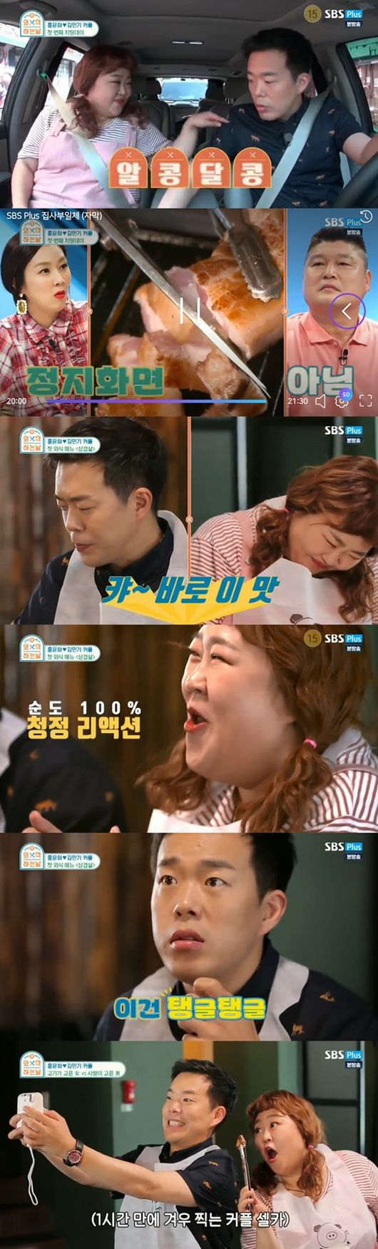 홍윤화와 김민기 커플은 데이트 외식을 공개했다. 홍윤화는 다이어트를 하며 일주일 중 하루만 만끽할 수 있는 치팅데이에 신나했다. 김민기는 "윤화한테는 데이트보다는 '치팅데이'다. 데이트는 옵션이다. 하지만 나한테는 정말 데이트다. 이렇게 둘이 있는 게 오랜만이다. 진짜 설렌다"고 말해 달달한 분위기를 자아냈다. 꿀 떨어지는 김민기의 시선에 김지헤는 "9년 연애했는데 9일 연애한 사이 같다. 나의 VCR이 걱정된다"고 말하기도.