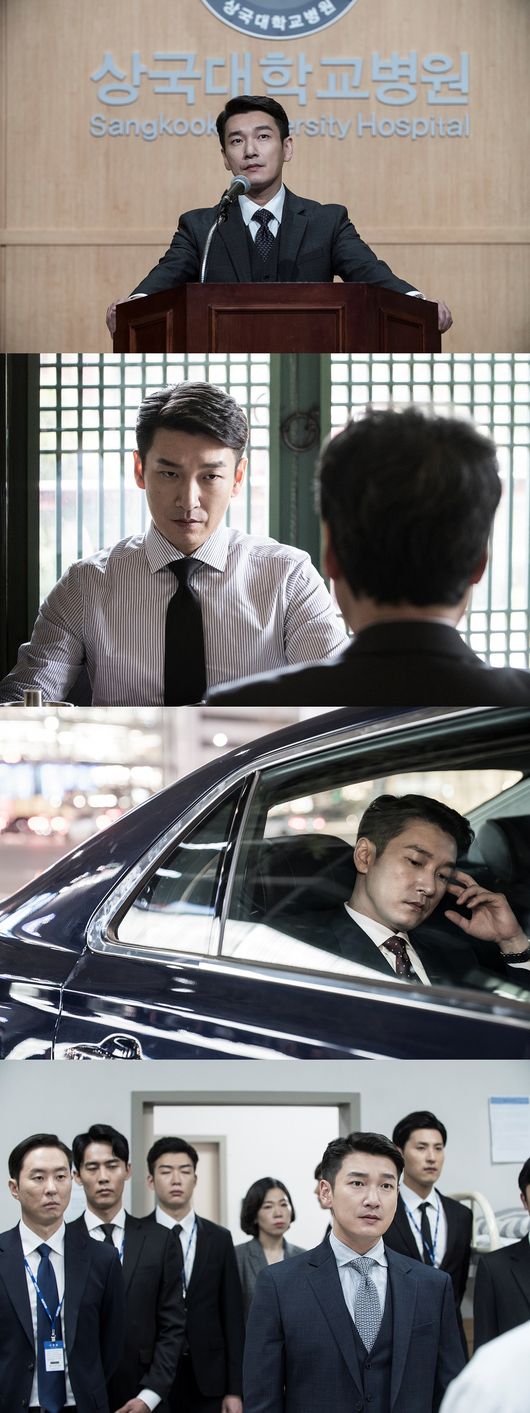 한 치의 오차도 허용하지 않는 정갈한 슈트핏도 조승우가 빚어낸 구승효의 정체성을 드러낸다. 자신을 둘러싼 많은 사람 사이에서도 단연 독보적 포스를 발산하는 구승효의 카리스마는 확고한 신념이 있기에 가능한 것. 의사들과의 팽팽한 신경전에도 여유를 잃지 않는 구승효의 모습은 병원을 뒤흔들 거센 바람을 예고한다. 순식간에 좌중을 압도하는 날 선 긴장감이 사진을 통해 고스란히 전해진다. 조승우이기에 가능한 몰입감이 본방사수 욕구를 자극한다.