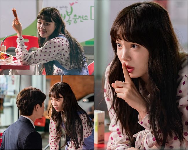 이어 윤소희는 커다란 소시지를 든 사랑스러운 표정으로 남심을 저격하고 있다. 술에 취해 기분이 좋은지 입꼬리를 씩 올린 채 해맑게 웃고 있는 모습인 것. 하지만 이내 상대방에게 두 눈을 부릅 뜨고 눈싸움을 벌이는 앙칼진 모습이 포착돼 다음 상황을 궁금하게 만든다.