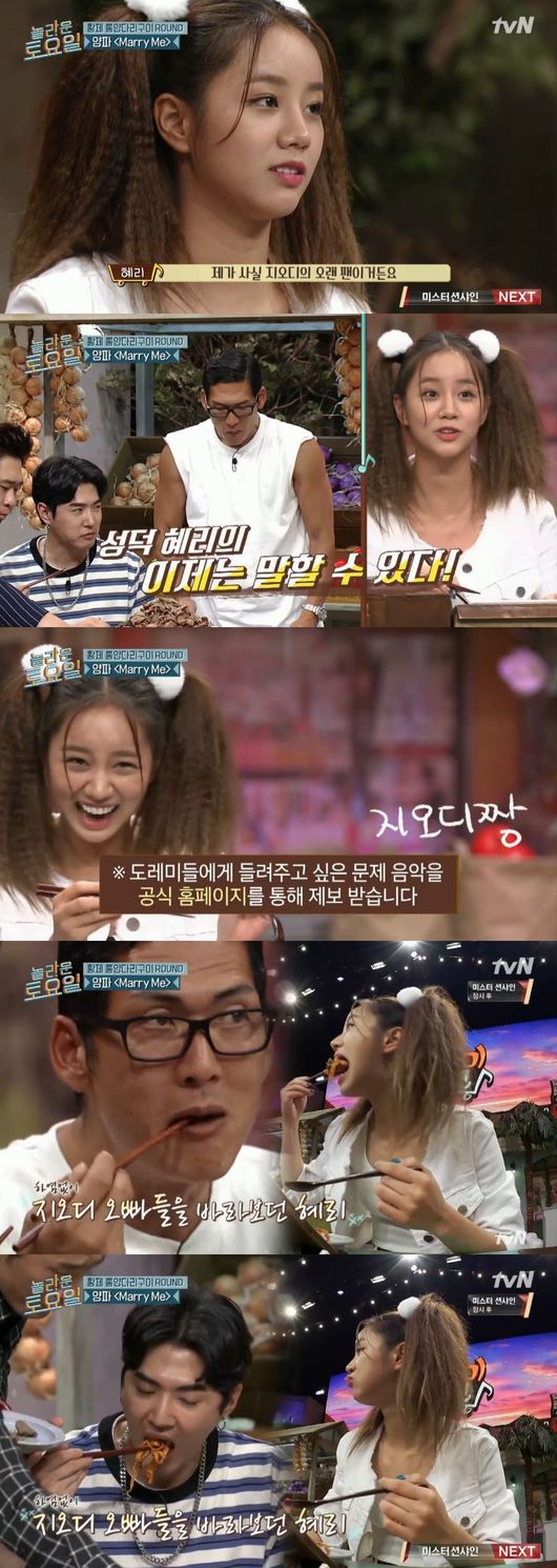 이때 ‘네 눈 위치 정수리 쪽’과 ‘내 눈 위치 정수리죠’로 나뉘어 마지막으로 대립했다. 한해는 ‘정수리죠’라고 주장했고, 혜리는 “‘정수리죠’면 가사 바꾸라고 했을 거다. ‘정수리죠’면 무릎 꿇는다”고 선언했다. 그러나 정답은 한해가 주장한 ‘정수리죠’가 맞았다. 혜리와 키는 한해에게 무릎을 꿇으며 사과해 웃음을 자아냈다.
