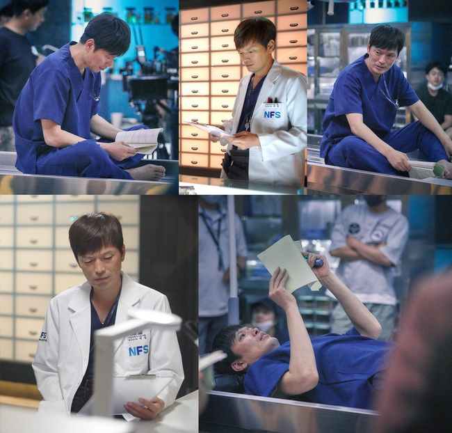또 정재영은 극 중 선보이고 있는 법의관 백범 캐릭터에 완벽히 몰입하고자 높은 집중력을 발휘하며 현장에서 끊임없이 분석할 뿐만 아니라 동료 배우들의 대사 또한 고려하며 꼼꼼히 의논하는 모습을 보여주는 등 명품 배우의 면모를 드러내 현장의 훈훈함을 더하고 있다는 후문이다.