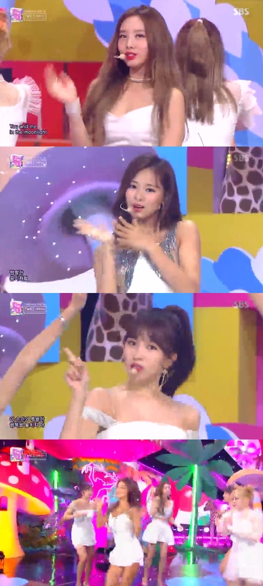 트와이스는 15일 방송된 SBS '인기가요'에 출연해 일주일째 음원차트 1위를 이어가고 있는 '댄스 더 나잇 어웨이'로 컴백 무대를 선보였다.