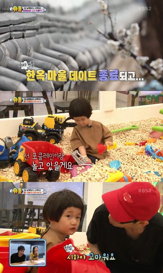 대박이와 시하는 한복집에 들어가 각각 남자, 여자 한복으로 갈아입고 다시 한옥마을 투어를 이어나갔다.