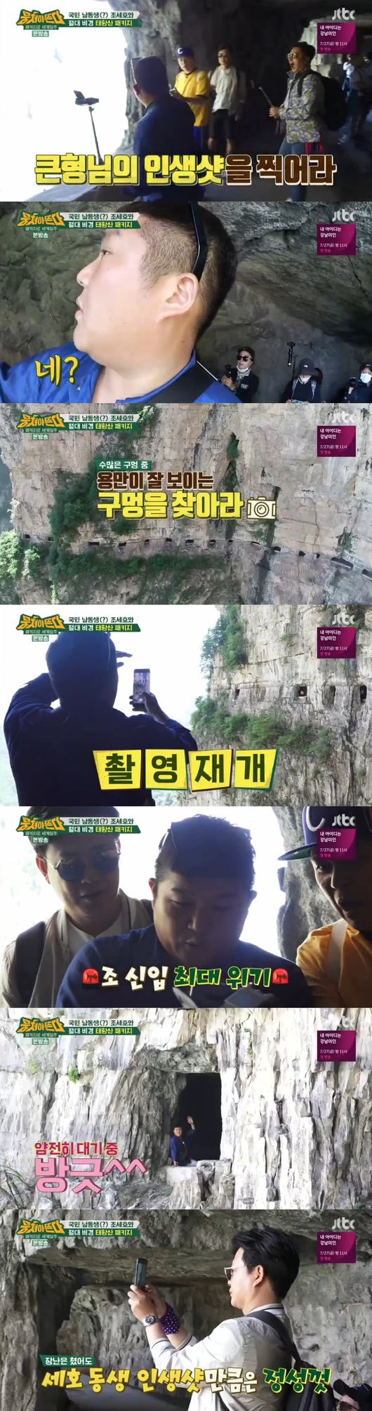 다음은 케이블카까지 걸어서 올라가야한다고 했다. 이때 김성주는 세호에게 또 다시 사진을 찍어달라고 했다. 자연스럽게 세호없는 사진이 완성됐다. 귀여운 세호 놀리기에 빠진 것이다. 보다못한 한 패키지 멤버가 "제가 찍어드리겠다"며 세호를 챙겼다. 덕분에 세호가 독사진을 건졌다. 나중에서야 김성주는 "세호가 없었다"며 놀렸다. 세호는 "나중에 합성하면 된다"며 쿨하게 받아쳤다. 김용만은 옆에 있던 세호를 챙겼다. 세호가 "굉장히 따뜻했다"고 하자, 김용만은 "우리 사진 찍어줘야하기 때문"이라고 했다. 어느새 형님들 사진전담사가 됐음에도 세호는 환하게 웃었다. 초 긍정주의였다.