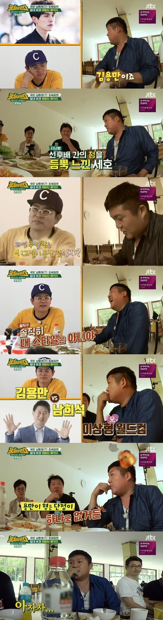 김용만은 갑자기 "세호야, 희석이 버려라 이제"라고 했다. 세호는 당황, 이어 "많이 섬겼다"고 했다. 형돈은 "넌 섬겼다고 하지 않냐, 우리 용만이 형은 무조건 평등이다"며 "우린 그냥 크루"라고 했다. 이어 바보흉내까지 냈다. 세호는 "다양한 부분이 가능하다"며 급 관심을 보였다.