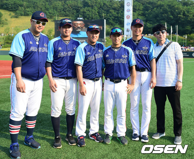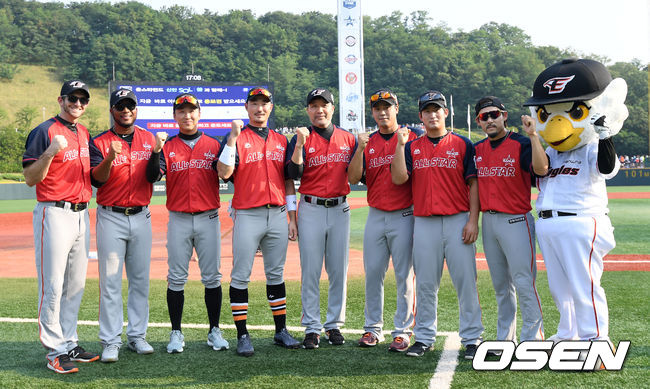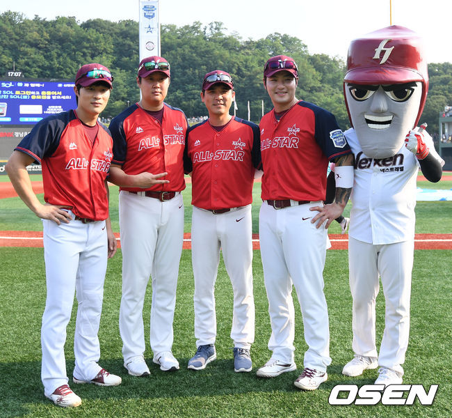 ▲올스타전에 앞서 포즈 취하는 한화 한용덕 감독 및 올스타 선수들