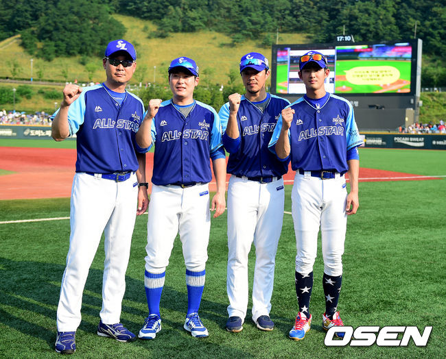 ▲올스타전에 앞서 포즈 취하는 삼성 김한수 감독 및 올스타 선수들