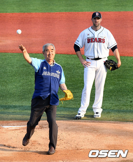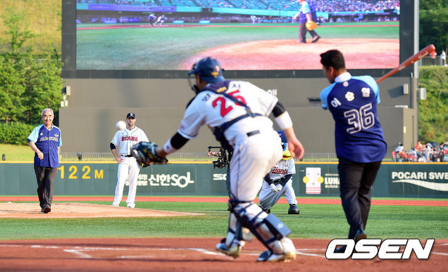 이날 시구는 강병철 전 롯데 자이언츠 감독이 맡았고 이승엽 KBO 홍보대사가 시타자로 등장했다. 양복 차림에 드림 올스타 유니폼을 입은 이승엽 홍보대사는 현역 시절처럼 타석에 서서 방망이를 휘둘렀다. 이승엽 홍보대사는 지난해까지 선수로 올스타 현장을 누빈 전설이다.