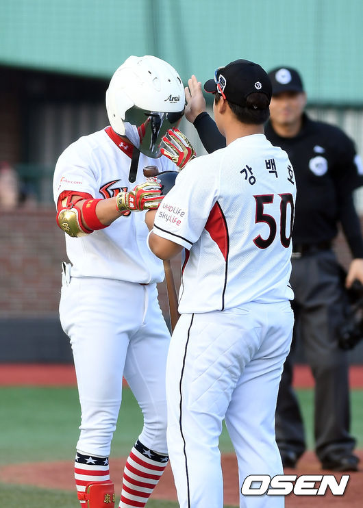 ▲김태형 감독,'강백호! 올 시즌 최고 루키 확실하네'