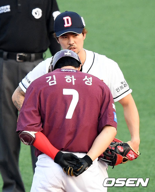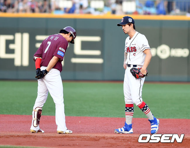 이후 3회초에는 나눔 올스타 김하성과 드림 올스타 오재원이 다시 한 번 웃음 폭탄을 터뜨리게 했다. 김하성은 3회초 선두타자로 등장해 좌월 솔로포를 터뜨렸다. 여기서 김하성이 2루를 돌 때 2루수 오재원이 김하성을 불러세웠고 호통을 치는 듯한 세레머니를 했다. 김하성도 당황하지 않고 고개를 숙이면서 오재원과 합을 맞췄다.
