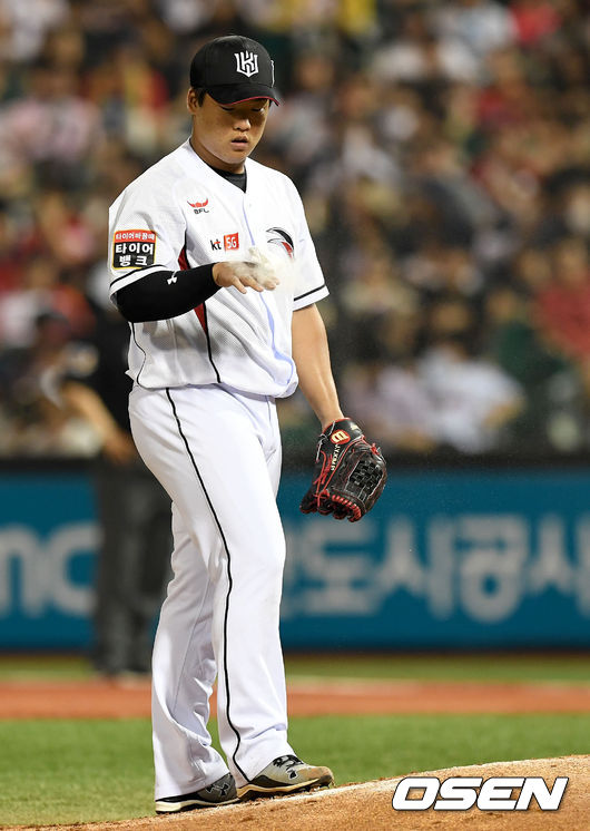 ▲6회초 마운드 올라 손에 로진 바르는 강백호