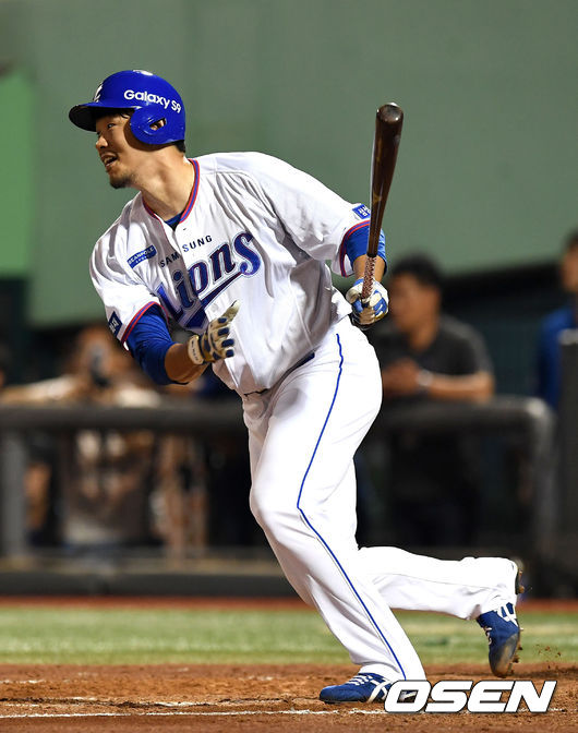 ▲시타자로 나서 스윙하는 KBO 홍보대사 이승엽