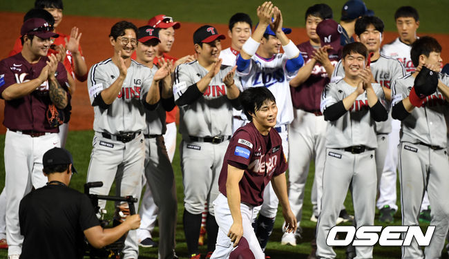 ▲미스터 올스타 선정된 후 동료선수들에게 축하 받는 김하성