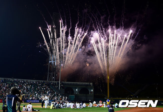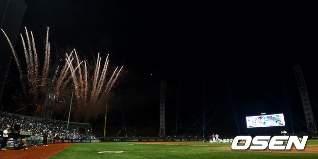 ▲울산 문수야구장 하늘 수놓은 불꽃놀이