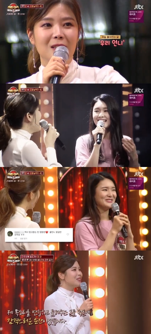 허미연이 '우리 언니 꽃길만 걷자'고 남긴 댓글을 기억해낸 린은 "그 댓글을 보고 밤에 울었다. 내가 좋아하는 말 중에 '우리 언니'라는 단어가 있다. 그렇게 말하는데 너무 행복하더라"고 말하며 허미연과 함께 눈시울을 붉혔다.