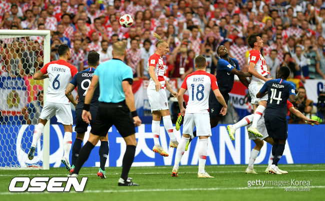 프랑스는 전반 18분 강점인 세트피스로 일순간에 흐름을 바꿔놓았다. 그리즈만의 크로스를 만주키치가 헤딩으로 걷어낸다는 것이 그대로 크로아티아 골문 안으로 빨려들어갔다. 월드컵 역사상 첫 결승전 자책골.