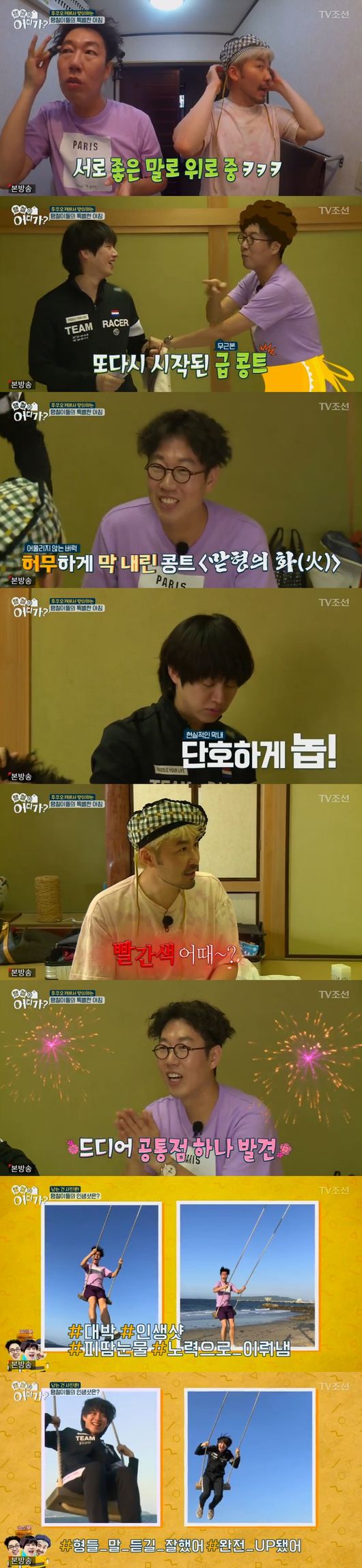웃음이 끊이지 않는 사이, 게스트하우스에 도착했다. 다사다난했던 하루가 끝나고 모두 잠들었다. 다음날 영철이 가장 먼저 기상했다. 부지런히 이부자리까지 정리했다. 조깅복을 챙겨입고 아침조깅을 시작했다. 동네 아주머니 덕분에 조깅 핫플레이스로 이동해 상쾌한 아침을 맞이했다.