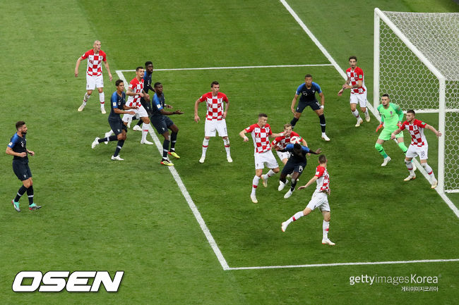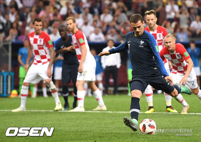 전반 38분 그리즈만의 페널티킥 골이 우승의 향방을 갈랐다. 1-1로 팽팽하던 전반 34분 프랑스의 코너킥 찬스서 올라온 크로스가 크로아티아 공격수 페리시치의 왼팔에 맞았다. 주심은 VAR 결과 페널티킥을 선언했고, 그리즈만이 성공시키며 프랑스가 다시 주도권을 잡을 수 있었다.