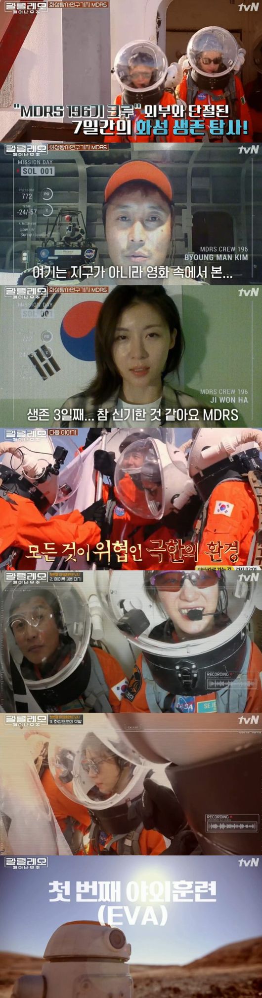 지난 15일 첫 방송된 tvN 새 예능 '갈릴레오: 깨어난 우주'(이하 갈릴레오) 1회에서는 MDRS(Mars Desert Research Station: 화성 탐사 연구 기지) 196기 크루인 김병만, 하지원, 2PM 닉쿤, 구구단 김세정, 과학 탐험가 문경수가 화성 탐사 연구 기지로 떠나는 모습이 전파를 탔다.