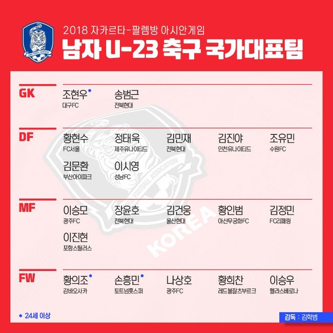 한편 김학범 감독은 와일드카드 발탁 이유에 대해서도 설명했다. 먼저 조현우에 대해서는 "강현무나 송범근 두 선수 모두 리그에서 안정적인 활약을 보이고 있다. 하지만 골키퍼의 중요성은 말할 필요가 없다. 마음 아프지만 월드컵서 최고의 활약을 보인 조현우를 뽑기 위해 한 선수를 제외했다"고 밝혔다.