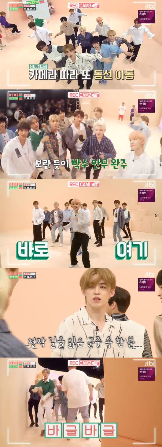 가장 먼저 '번불번댄'에 나섰다. 카메라당 배치된 번호를 부르면 해당 카메라를 중심으로 대열을 정리해 안무를 선보이는 것. 세븐틴은 '아주 나이스'로 무리없이 소화해 도니코니를 당황케 했다. 이에 '울고 싶지 않아', '박수' 등을 추며 기습 공격에도 굴하지 않는 칼군무를 선보여 성공을 거두고야 말았다.