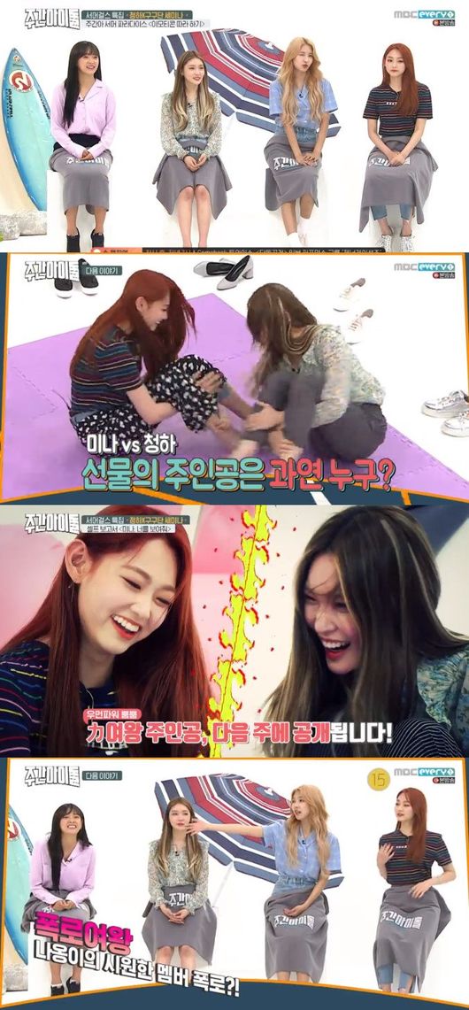 그런가 하면 청하와 세미나는 진정한 힘의 여왕을 가리기 위해 '우먼파워 테스트-돼지 씨름'를 진행해 다음화를 궁금하게 만들었다. 치열한 승부 끝에 우승을 거머쥐는 이가 누구일지 궁금증을 높인 것.