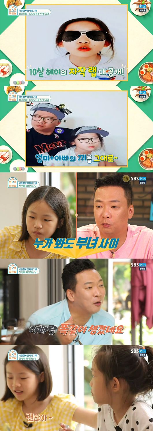 박준형, 김지혜의 두 딸은 각각 12살, 10살 주니와 혜이다. 김지혜는 딸들의 외모에 자신감을 내비치며 두 딸을 공개했는데 모두 아빠 박준형 붕어빵이었다. 특히 둘째 딸은 박준형과 똑같이 생겼고 끼도 그대로 물려받았다. 혜이는 가수나 배우가 되는 게 꿈이라며 “가수로 시작해서 배우를 할 거다”고 했다. 이어 둘째 딸이 자작랩을 한 영상이 공개됐는데 10살이지만 ‘스웩’이 있었고 돈스파이크가 칭찬하기도 했다.