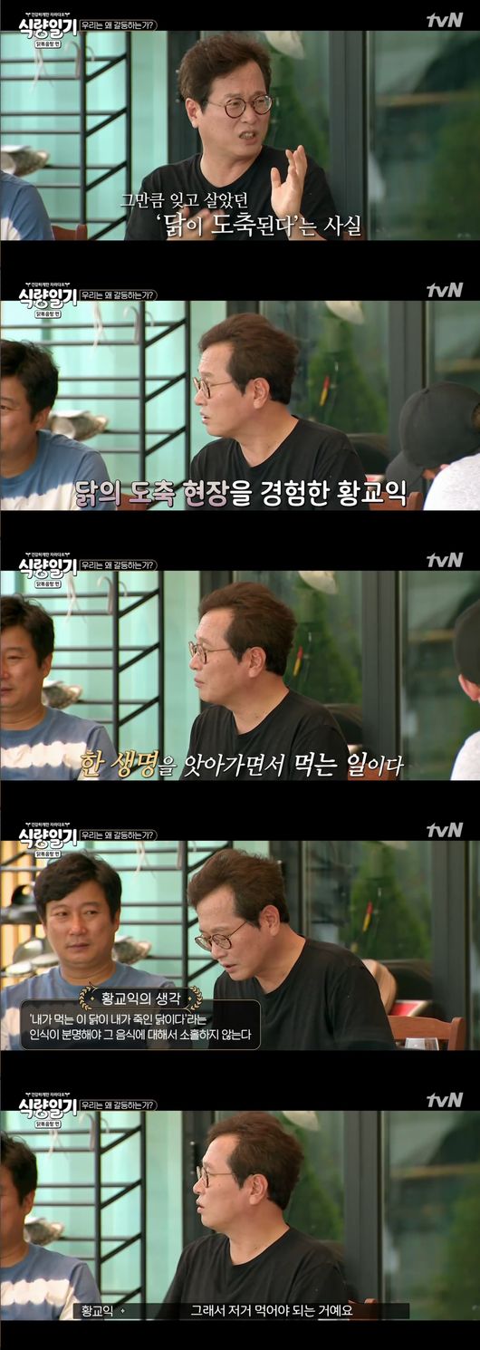 지난 18일 방송된 tvN ‘식량일기’에서 맛칼럼니스트 황교익이 키운 닭을 먹어야 하는지, 먹지 말아야 하는지 고민하는 멤버들의 생각을 전환시켜줬다.
