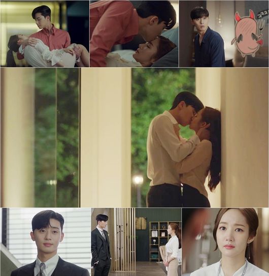 서로 다른 두 사람이 만나 맞춰가는 것이 사랑이기에 미소도 영준이 자신에게 그러했던 것처럼 영준의 마음을 이해했다. 퇴근 후 영준의 집으로 찾아간 미소는“부회장님 마음 생각하지 못하고 말한 거 미안하다고 사과하고 싶어서요.. 그리고 저 오늘 집에 안 들어갈 거에요”라며 수줍게 영준을 도발했다. 이에 영준은 “지금 이대로 우리 집으로 들어가면 나 오늘은 속도조절 못해 절대 멈출 생각 없어”라고 경고(?)했고, 미소는 결심이 선 듯 먼저 문을 열고 들어가 시청자들의 심장을 쿵쾅거리게 했다. 이어진 두 사람의 격정 키스와 영준의 “사랑해”라는 뜨거운 고백은 시청자들의 입을 틀어막게 만들며 짜릿한 전율을 선사했다.
